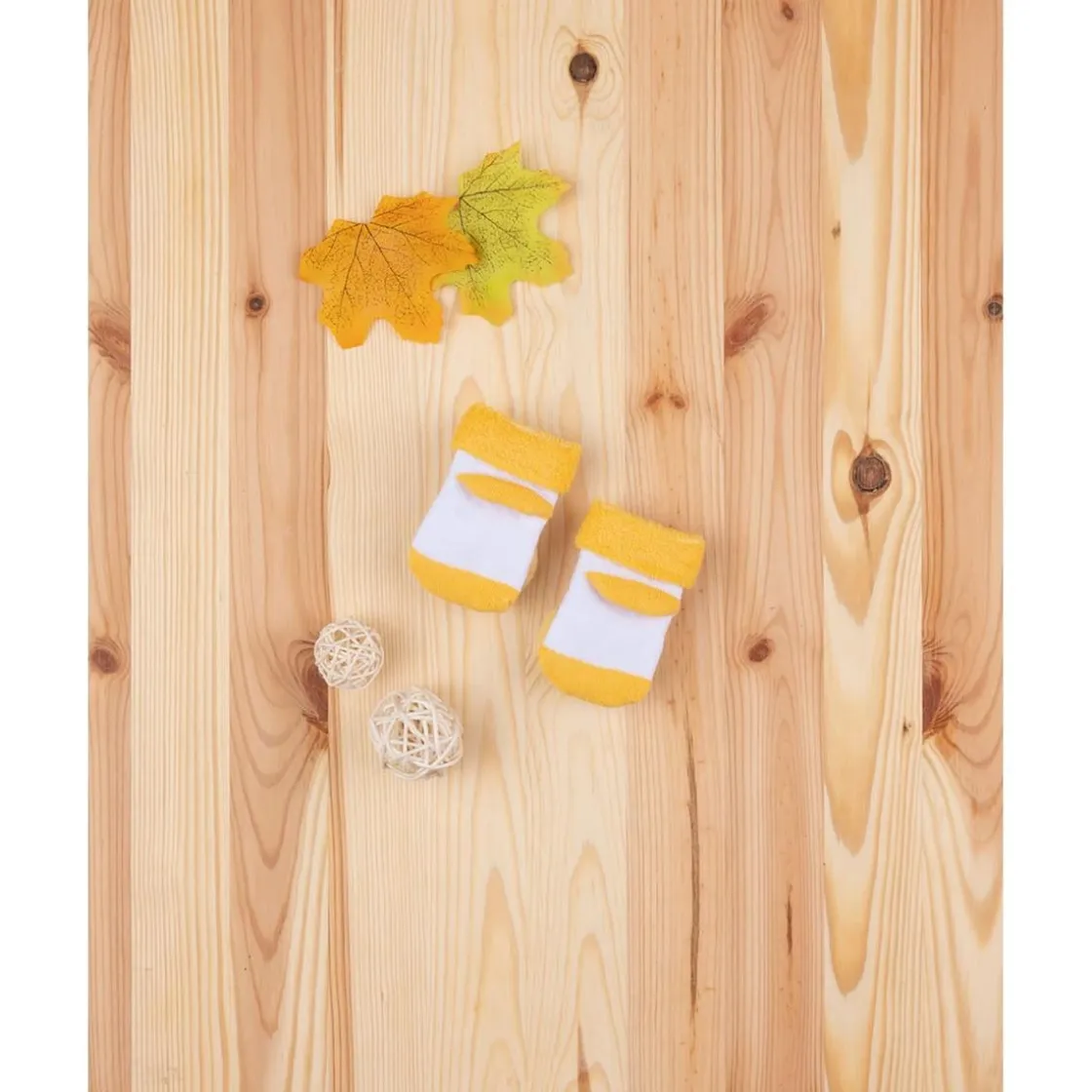 Tiernos calcetines unisex en blanco y amarillo limón con divertido sonajero de pollito en tonos coordinados. Suaves y cómodos, ideales para mantener entretenido al bebé mientras se mantiene calentito.