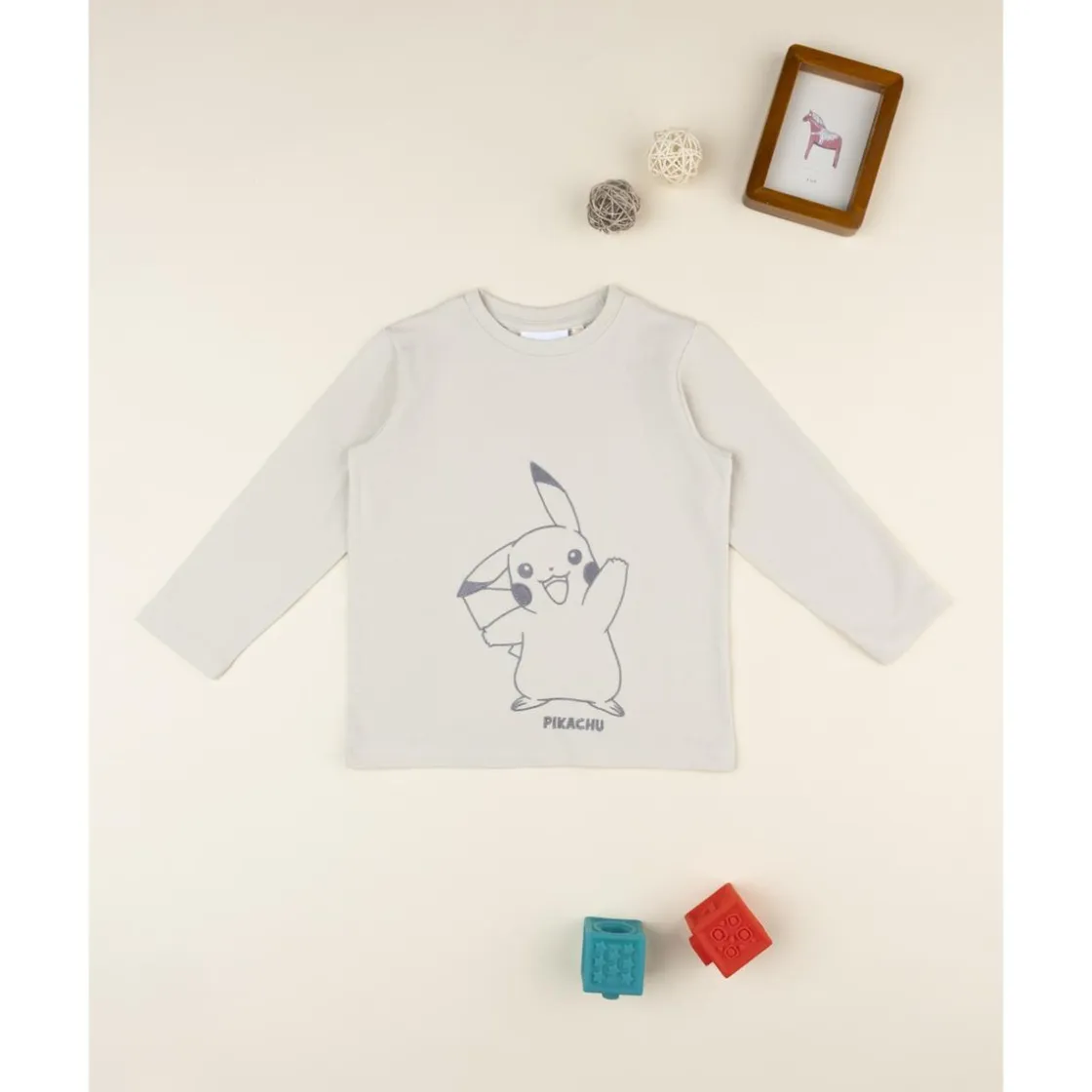 La camiseta Pokémon beige es perfecta para los pequeños fans del universo Pokémon. Confeccionada en algodón elástico, ofrece un tacto suave y cómodo. Presenta un estampado frontal grande con los personajes más conocidos, ideal para combinar con pantalones o vaqueros en los looks más divertidos.