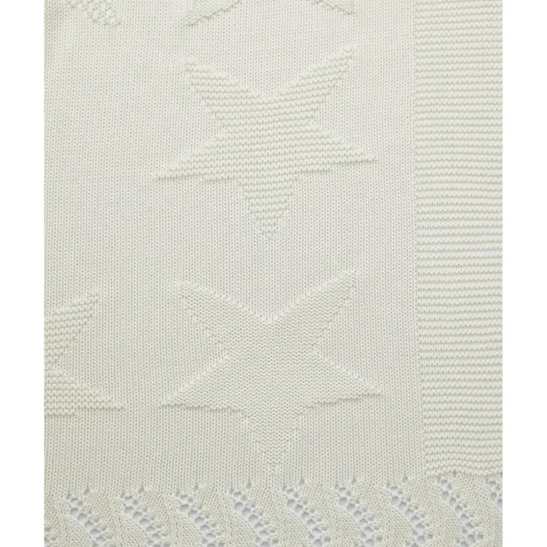 Este cálido chal de punto está confeccionado en hilo de algodón blanco y presenta un diseño tonal de grandes estrellas, aportando elegancia y confort.