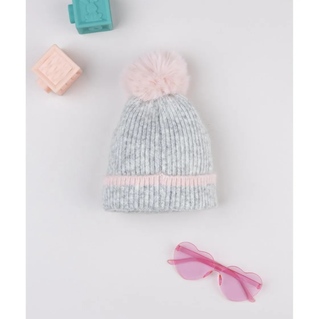 Este gorro infantil de punto combina gris y rosa con un suave pompón a juego y un pequeño bordado de Minnie en la parte frontal. Su interior en 100 % poliéster garantiza calidez sin picar al contacto con la piel.