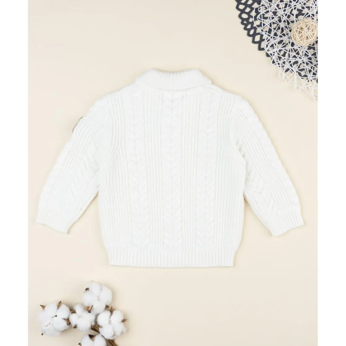 Jersey tricot blanco con parche en la manga para niño