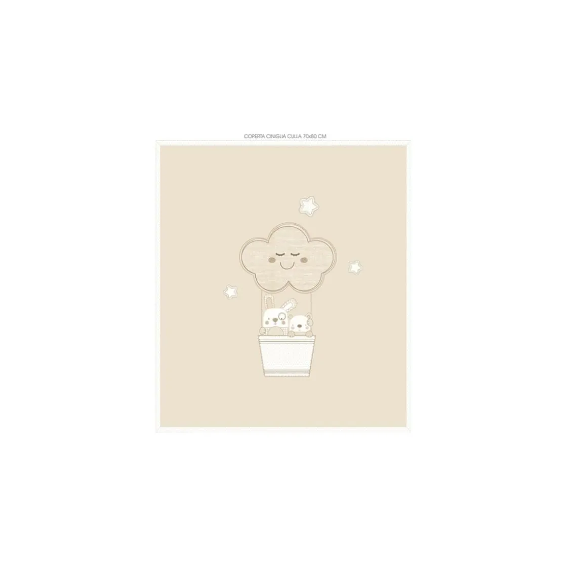 Esta tierna manta de chenilla para cuna o carrito está decorada con un diseño de globo aerostático y animalitos, proporcionando calidez y confort a tu bebé.