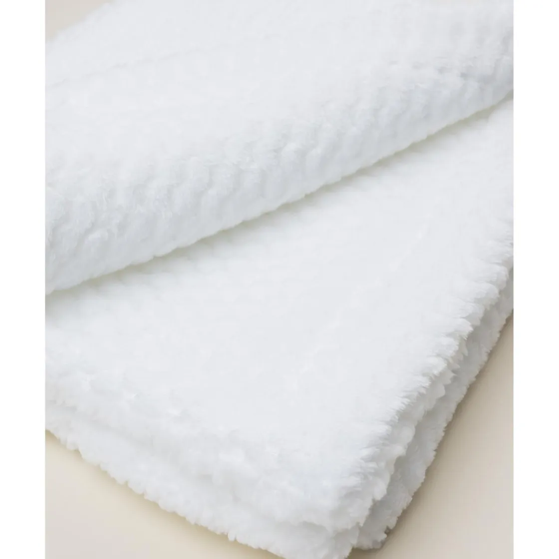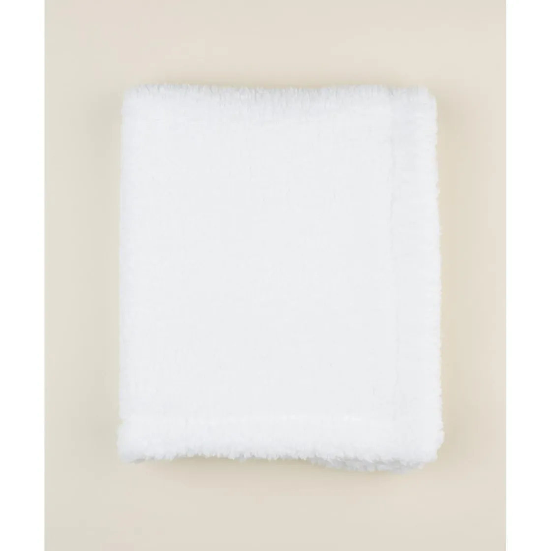 Manta de chenilla suave y manejable para recién nacidos, en total blanco con detalles de peluche. Su tejido certificado Oeko-Tex garantiza seguridad y ausencia de sustancias nocivas, ideal para proteger y abrigar al bebé con delicadeza.