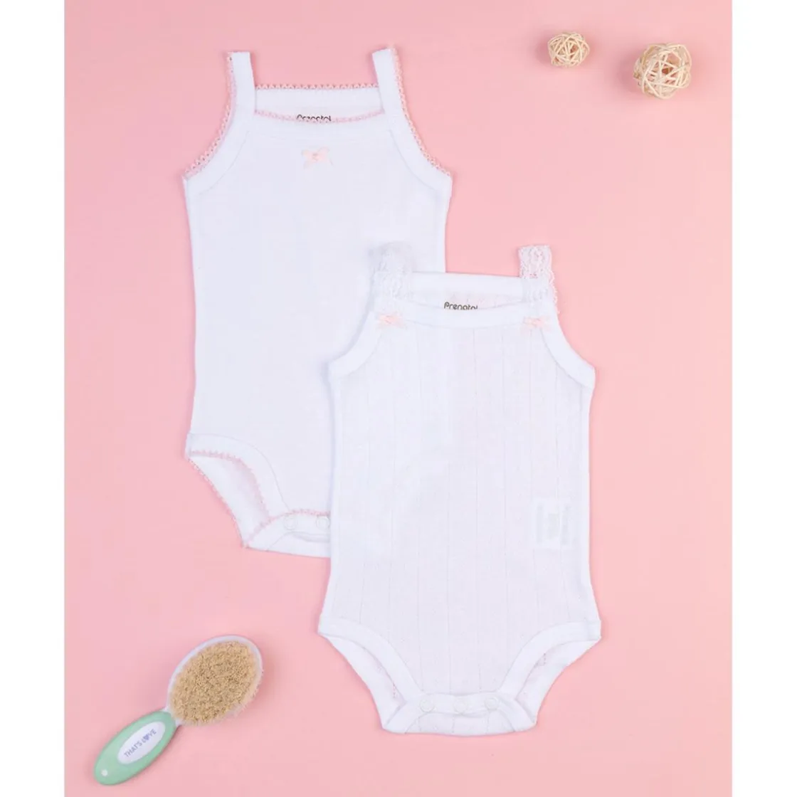 Práctico pack de 2 bodies para bebé en algodón suave. Diseño básico pero con todo el confort que necesita tu peque.