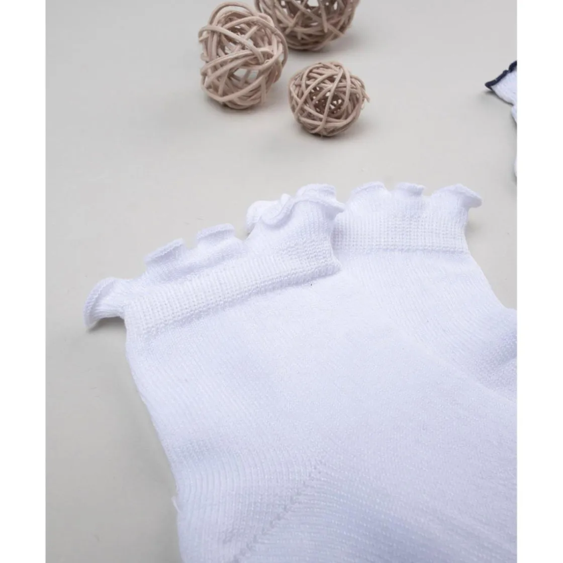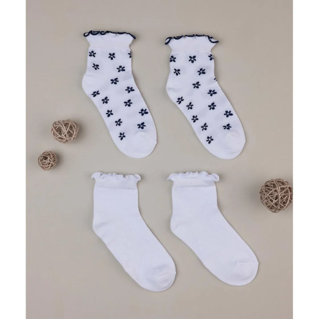 Tierno pack de 2 calcetines cortos para niña. Las prendas se desarrollan sobre una base blanca con detalles en azul noche y tobillo fruncido. La vestimenta es suave y garantiza cero molestias. Accesorios no a la venta. El paquete contiene solo la prenda de vestir.