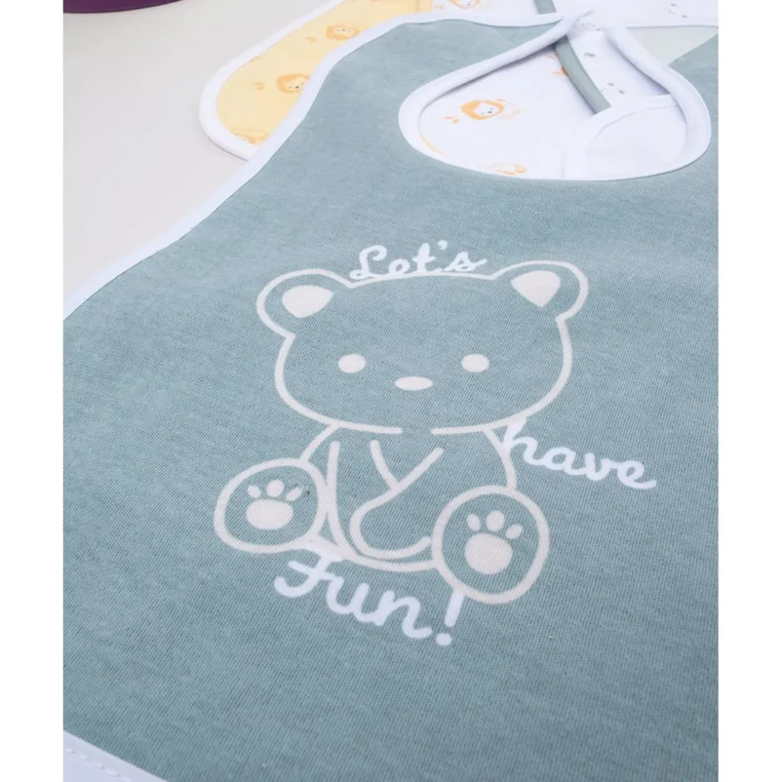 Set práctico con diseños variados de fauna salvaje en tonos vibrantes. Parte posterior plastificada anti-manchas y sistema velcro de alta resistencia. Tamaño XXL (35×40 cm) para máxima cobertura.