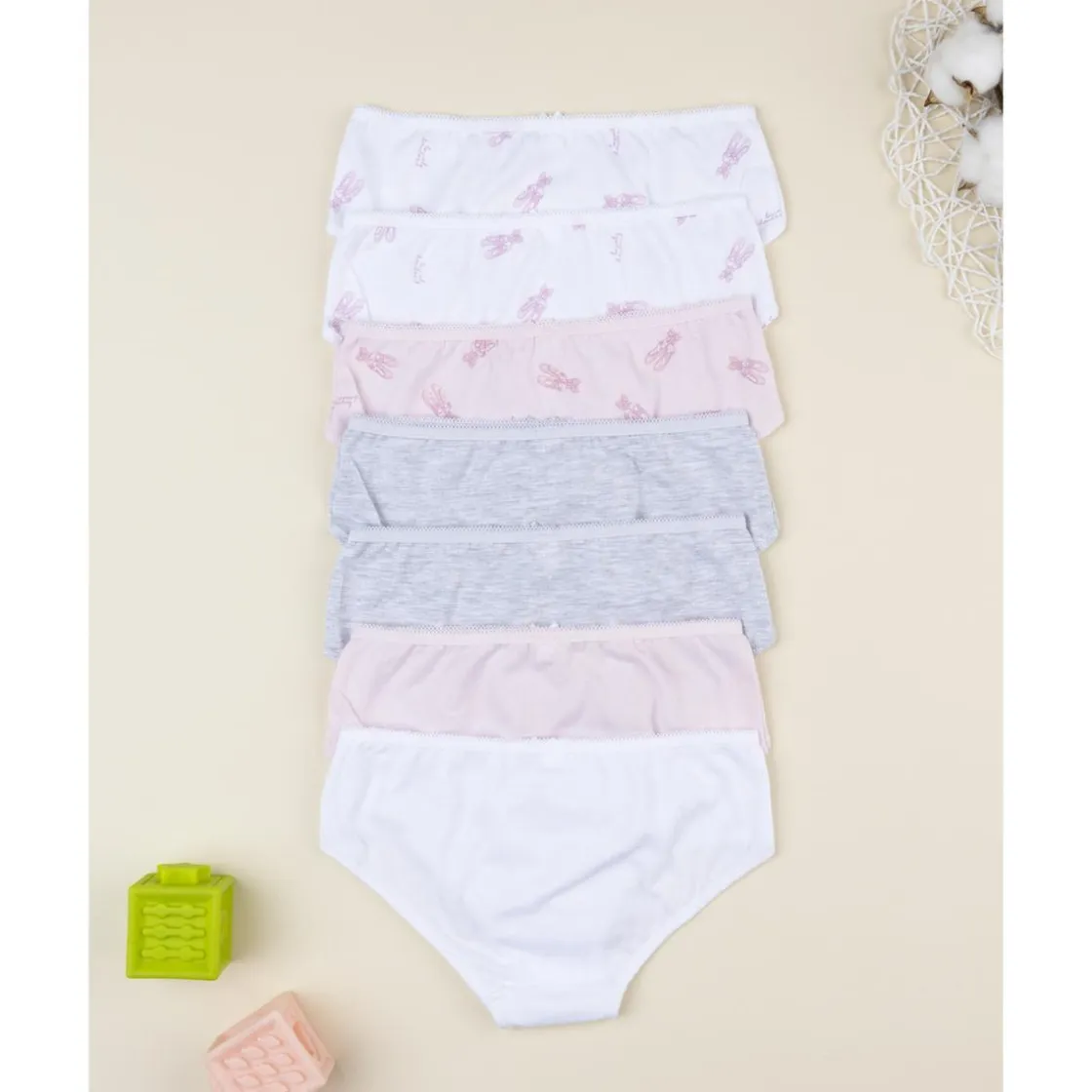 Este pack de 7 braguitas de algodón ofrece comodidad y suavidad para el uso diario. Incluye modelos en blanco, rosa y gris, decorados con estampados de danza que encantan a las más pequeñas. Su cintura elástica garantiza un ajuste perfecto sin molestias.