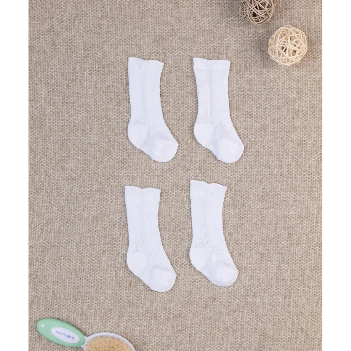 Pack de 2 pares de calcetines primer día algodón blanco. Pack compuesto por dos pares de calcetines de primer día confeccionados en algodón de color blanco con suaves gomas elásticas que se adhieren sin forzar.