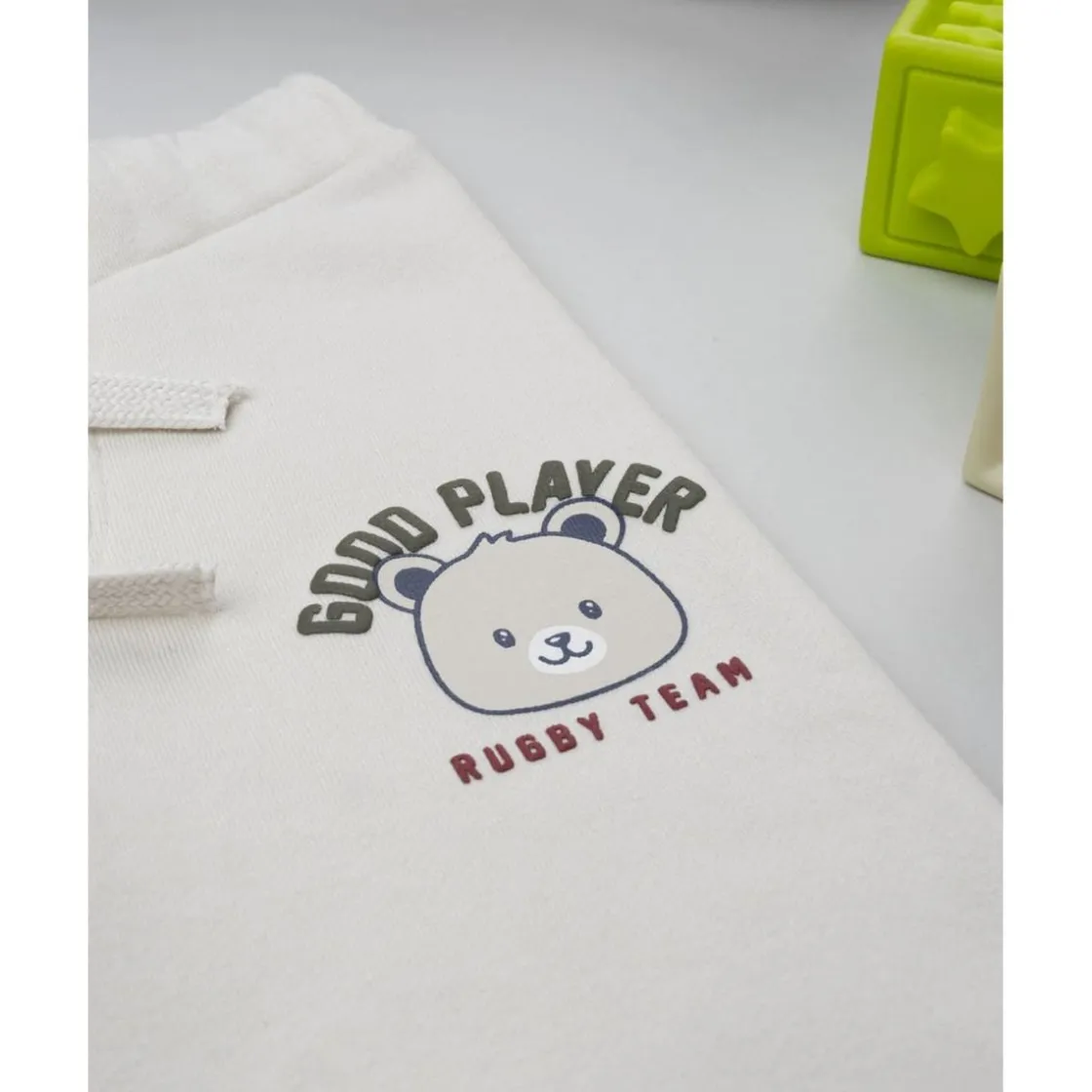 El pantalón beige con estampado para niño combina estilo y funcionalidad en una prenda versátil. Confeccionado en algodón afelpado, proporciona suavidad y abrigo sin limitar los movimientos. De color ecru con un pequeño estampado decorativo, cuenta con cintura elástica y cordón ajustable para mayor comodidad.