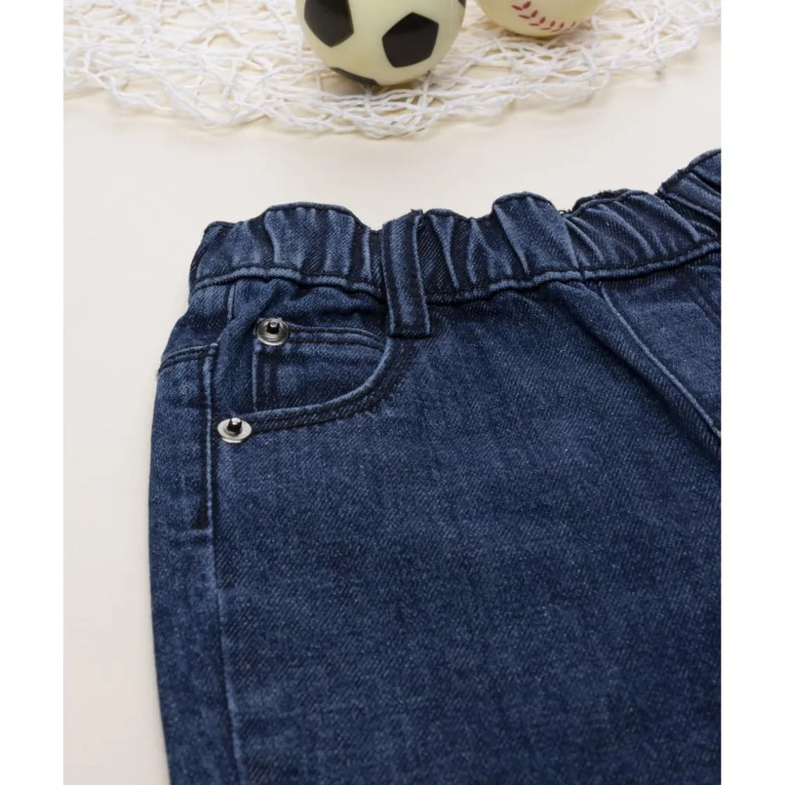 Casual pantalón denim para niño en azul con bolsillos delanteros moldeados y bolsillos parche en la parte trasera. Ajuste suave y cómodo gracias a la cintura elástica. Ideal para looks diarios y combinables.