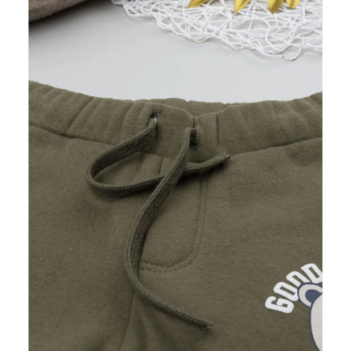 Casual y cómodo, este pantalón felpado para niño se presenta en color verde militar con un pequeño estampado coordinado que aporta un toque divertido. Su diseño incluye cintura ajustable mediante cordón, ofreciendo libertad de movimiento y confort durante todo el día. Ideal para combinar con camisetas y sudaderas, este pantalón es perfecto para ocasiones casuales y para que el niño disfrute jugando o en el colegio con total comodidad.