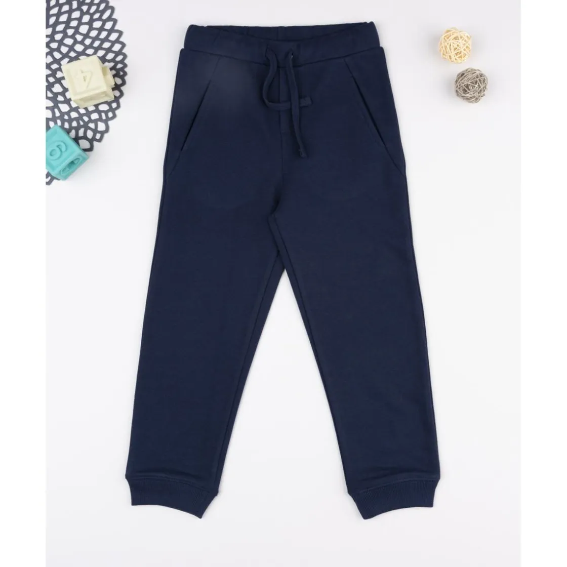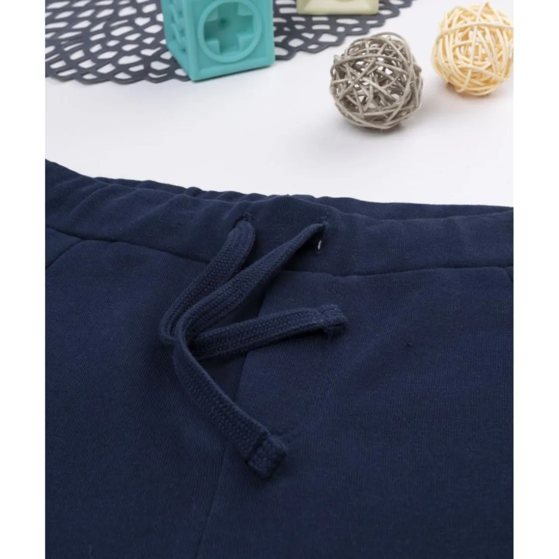 Pantalón casual en french terry azul noche con bolsillos laterales. Ajuste suave y cintura con cordón. Ideal para ocasiones informales.