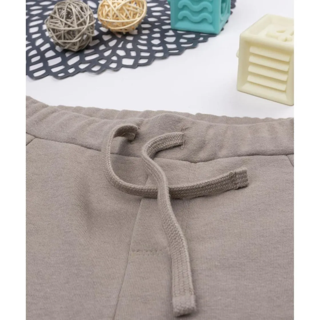 Pantalón casual en french terry marrón con bolsillos laterales. Cintura regulable con cordón. Ideal para uso diario.