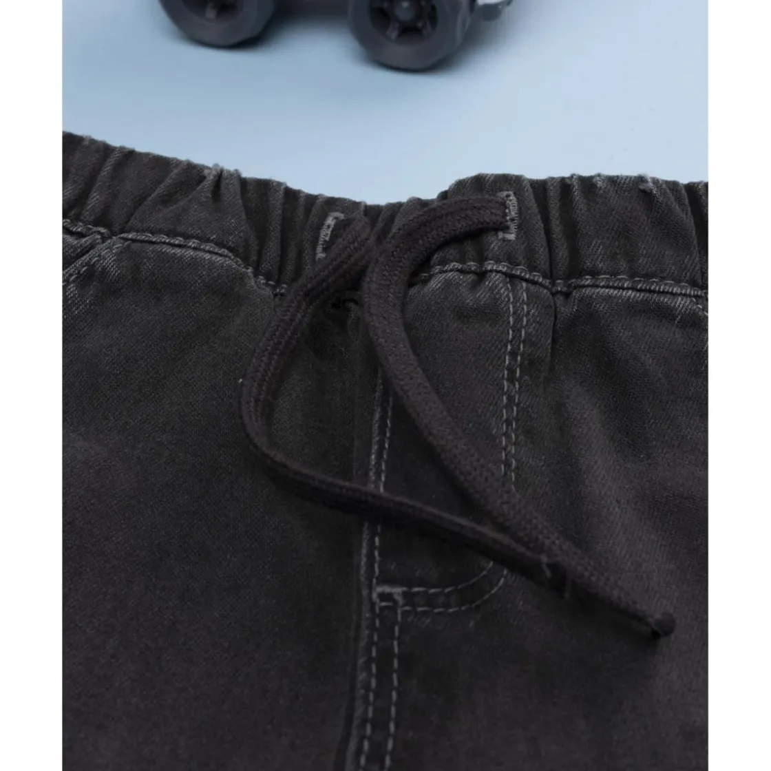 Incluye cintura ajustable con goma elástica y cordón a juego, lo que permite adaptarlo al crecimiento del niño y asegurar un ajuste cómodo en todo momento. Sus bolsillos frontales aportan funcionalidad y un toque casual, perfecto para completar looks urbanos y desenfadados.