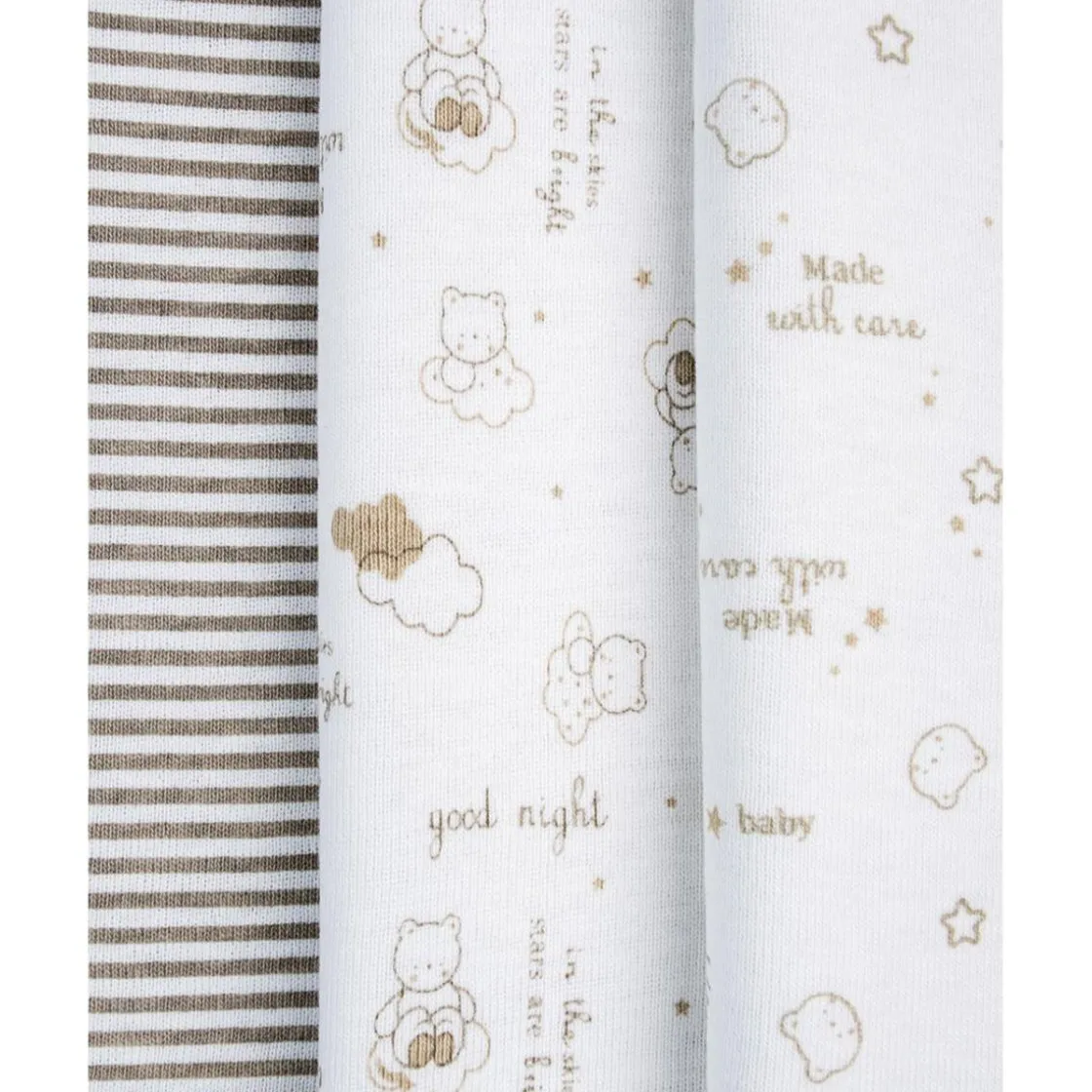 Delicado pack de 5 bodies unisex de manga corta en 100% algodón. Las prendas se desarrollan todas sobre fondo blanco o a rayas y están enriquecidas con estampados diferentes como gatitos, ositos, estrellitas, todos en tonalidades de amarillo dorado y marcados solo en los bordes. También hay inscripciones como «Lovely, baby, made with care». El ajuste es práctico gracias a los botones automáticos presentes en la entrepierna. Accesorios no a la venta. El paquete contiene solo la prenda de vestir.