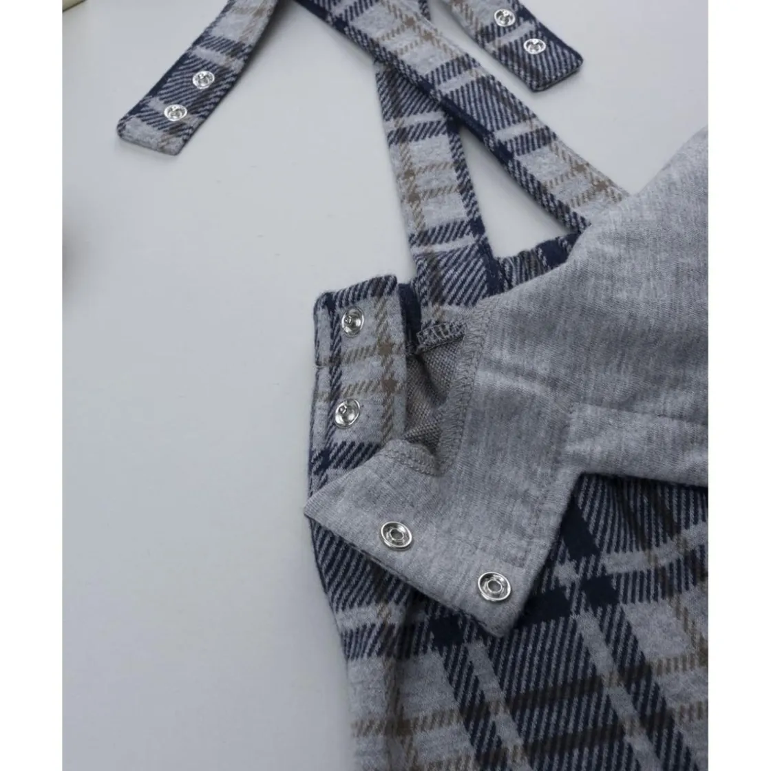 El peto de cuadros escoceses en tonos azules para niño combina tradición y modernidad. Incluye varios bolsillos de parche que añaden practicidad al diseño.