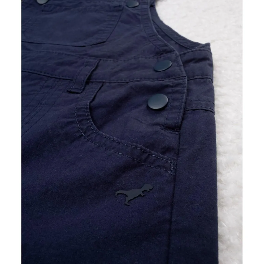 Peto de popelina informal para niño. La prenda se presenta en un total azul noche con botones de metal coordinados. El ajuste es suelto y práctico. El peto es adecuado para ocasiones informales. Accesorios no a la venta. El paquete contiene solo la prenda de vestir.
