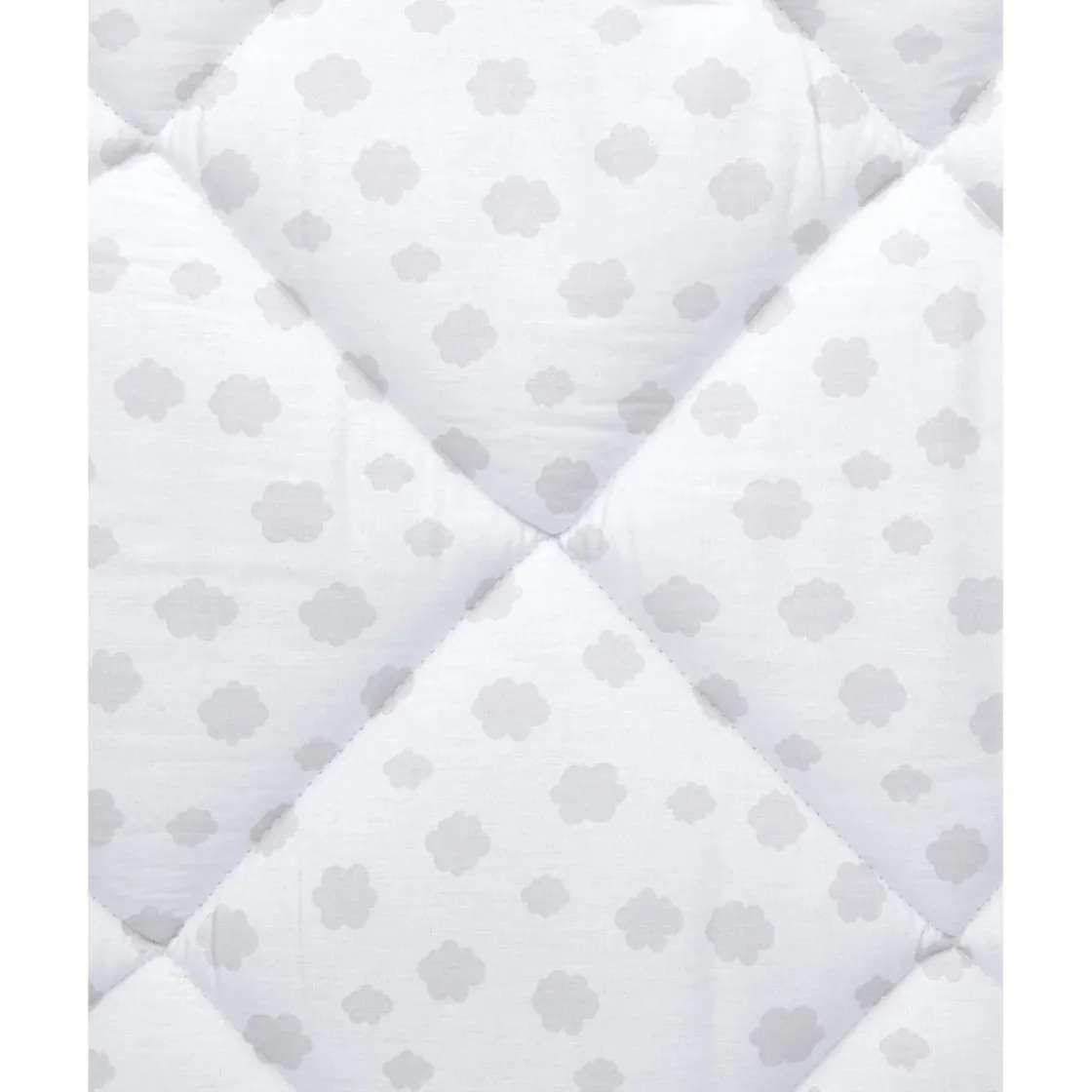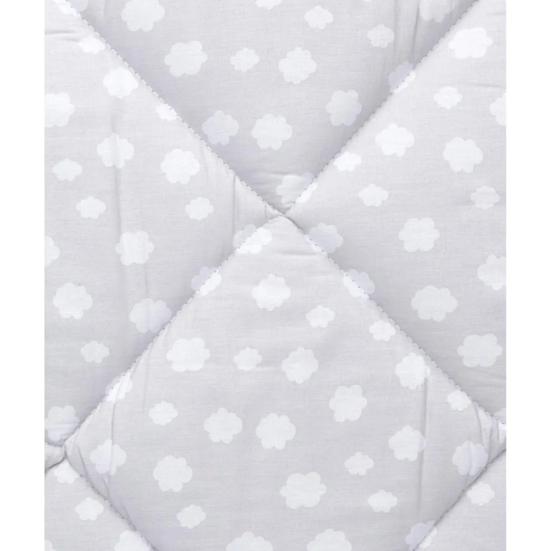 Este suave protector de cuna en tono gris con estampado de nubes blancas asegura un sueño tranquilo para tu bebé. Es extremadamente práctico, ya que se fija en los tres lados de la cuna mediante cintas y es lavable a máquina.