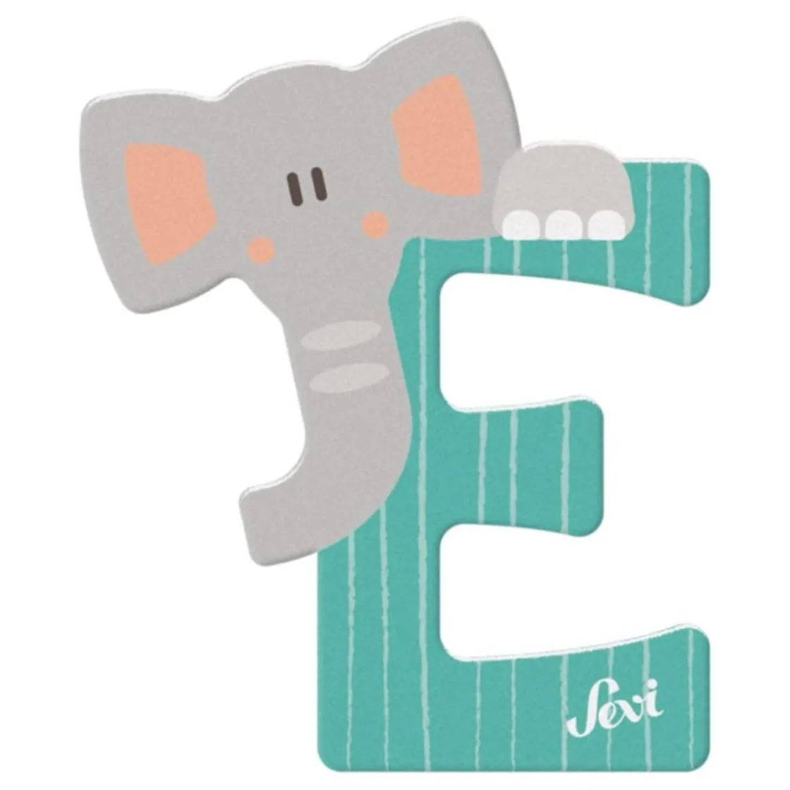 La E es ideal para formar nombres, palabras divertidas o decorar la habitación con un toque único. Además, su simpático elefante la hace aún más especial.