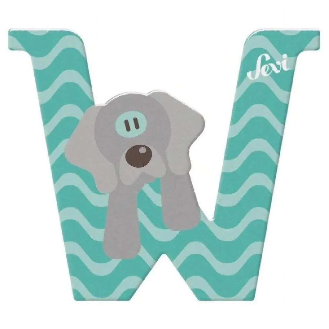 ¡La Letra W de madera de Sevi tiene un perrito gris genial!