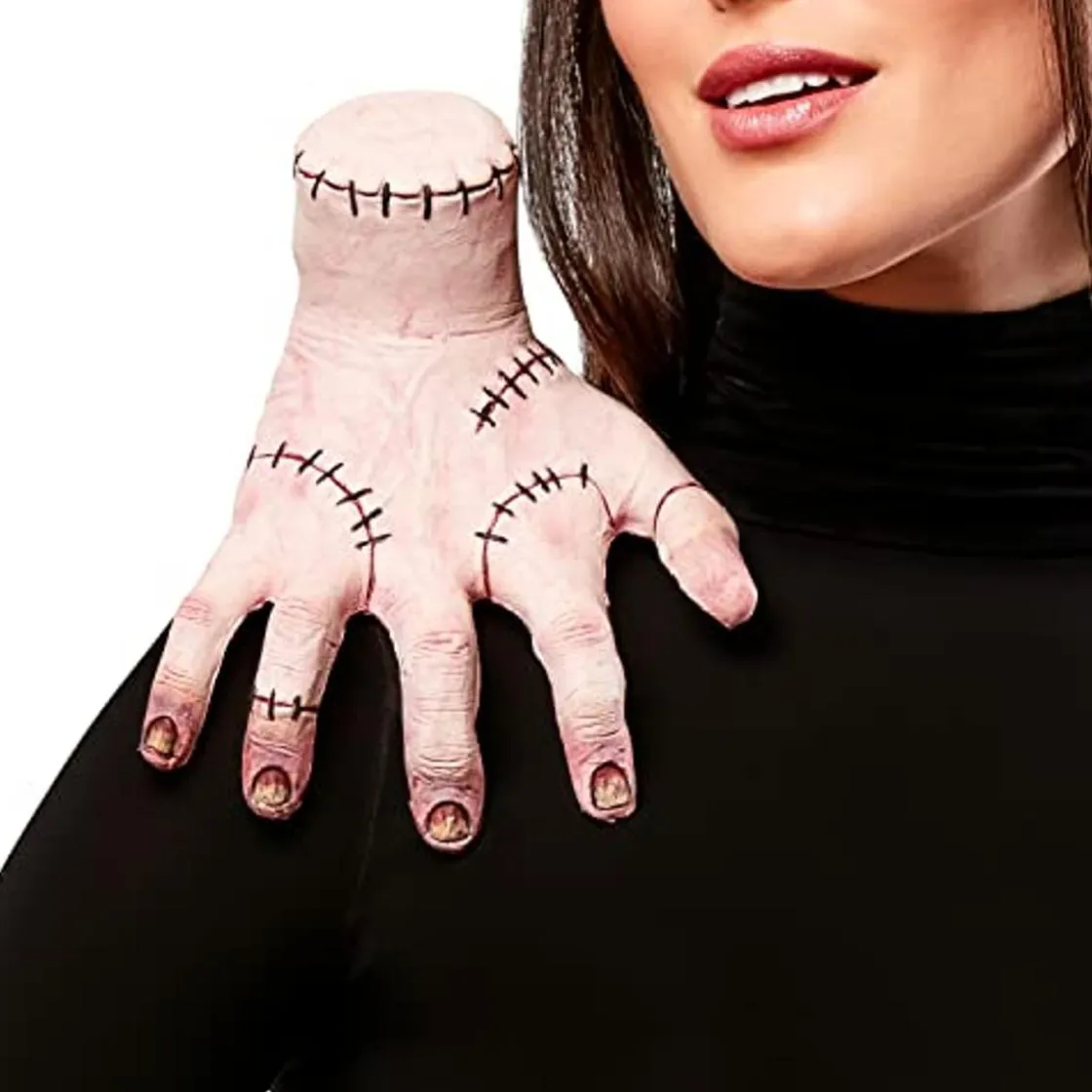 El accesorio es un diseño oficial de «Wednesday» que remeda de forma detallada a La Cosa, un personaje importante de la serie. Así, tu hijo puede tener en su hombro una réplica exacta de este icónico y encantador personaje, que agrega un toque único y especial a su disfraz de Wednesday Addams.