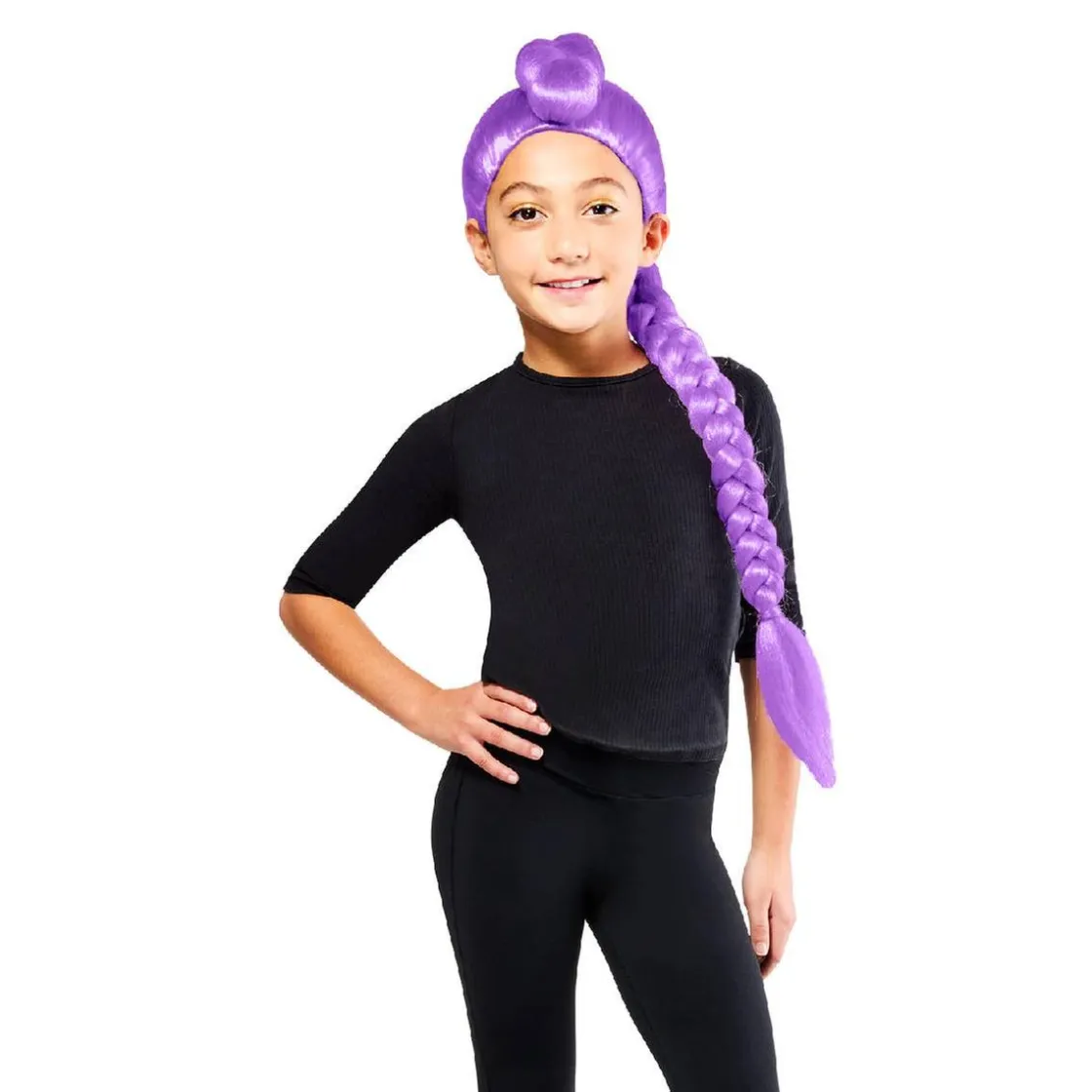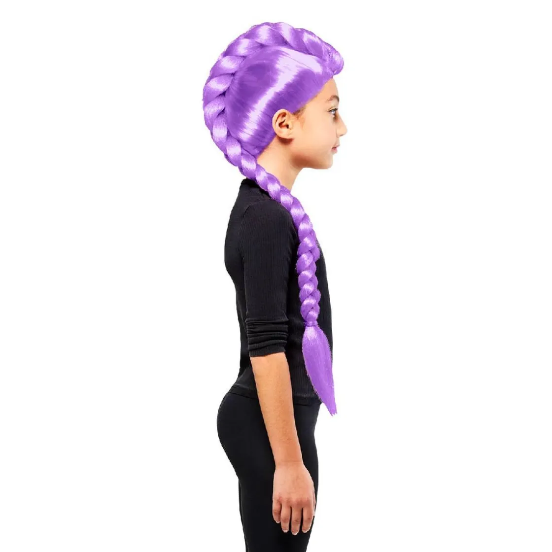 - Cabello sintético largo en color morado brillante, fiel al look original del personaje.