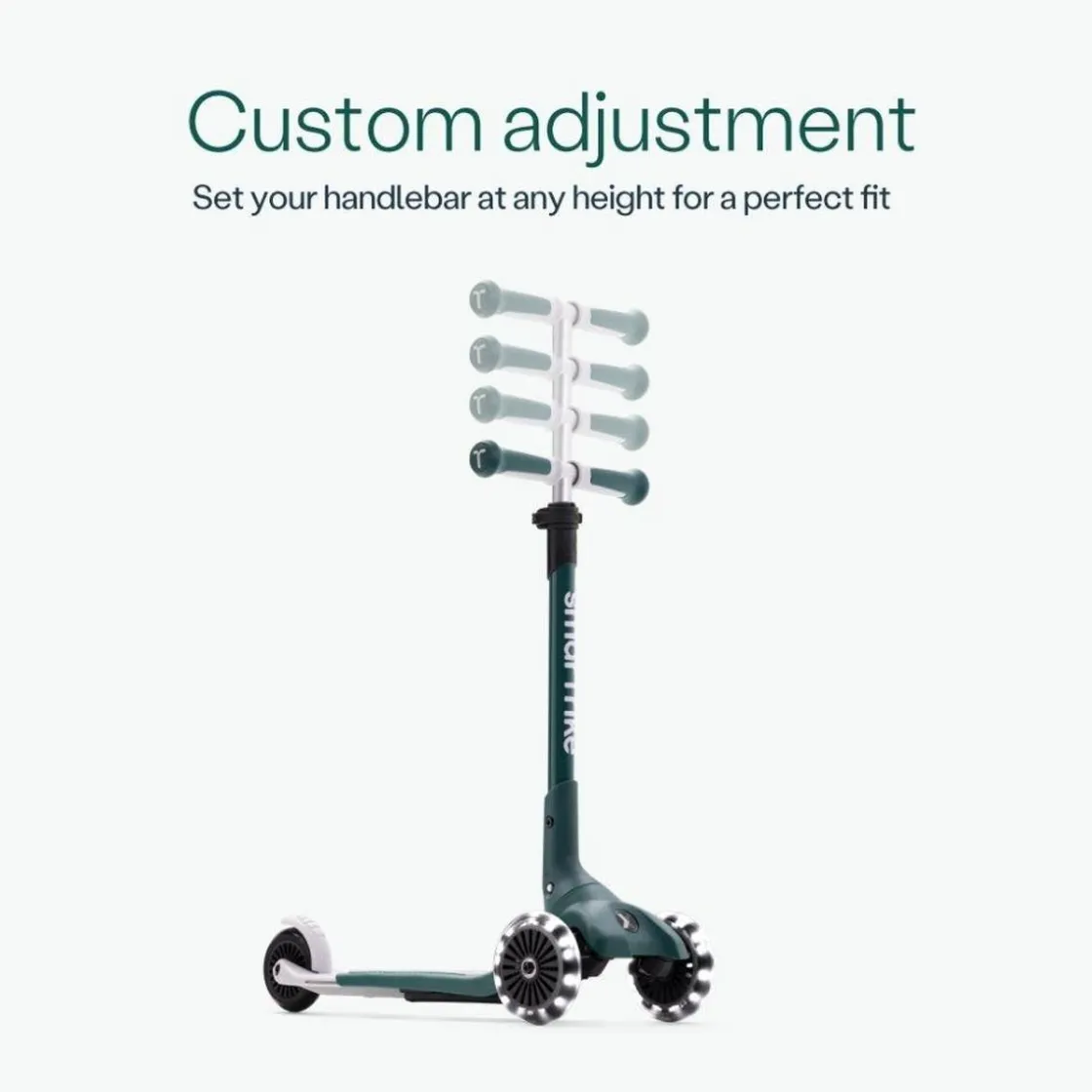 El patinete evolutivo SmarTrike Xtend Mini+ Green es la opción ideal para acompañar a los niños desde los 2 hasta los 9 años. Su innovadora base extensible permite ajustar la longitud del patinete en tres posiciones, adaptándose al crecimiento del niño sin necesidad de herramientas. Además, cuenta con un manillar regulable en altura y ruedas LED que iluminan el camino, ofreciendo mayor visibilidad y diversión durante los paseos. Su sistema de plegado rápido con solo presionar un botón facilita su transporte y almacenamiento. Con un peso ligero de 2,7 kg, es fácil de manejar para los pequeños. Disponible en colores azul, rosa y menta.