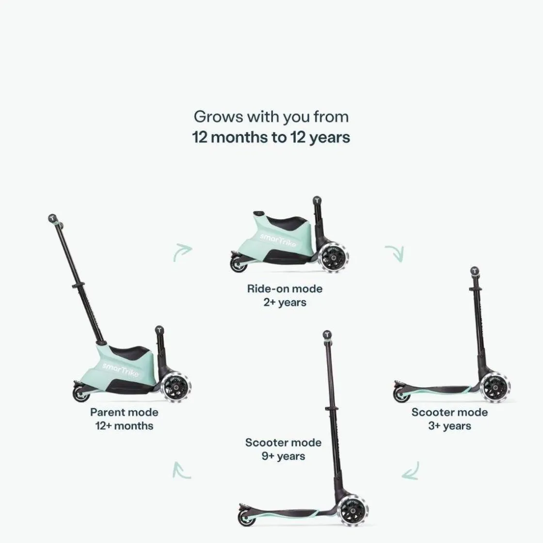 SmarTrike Xtend Scooter+Ride On Soft Green