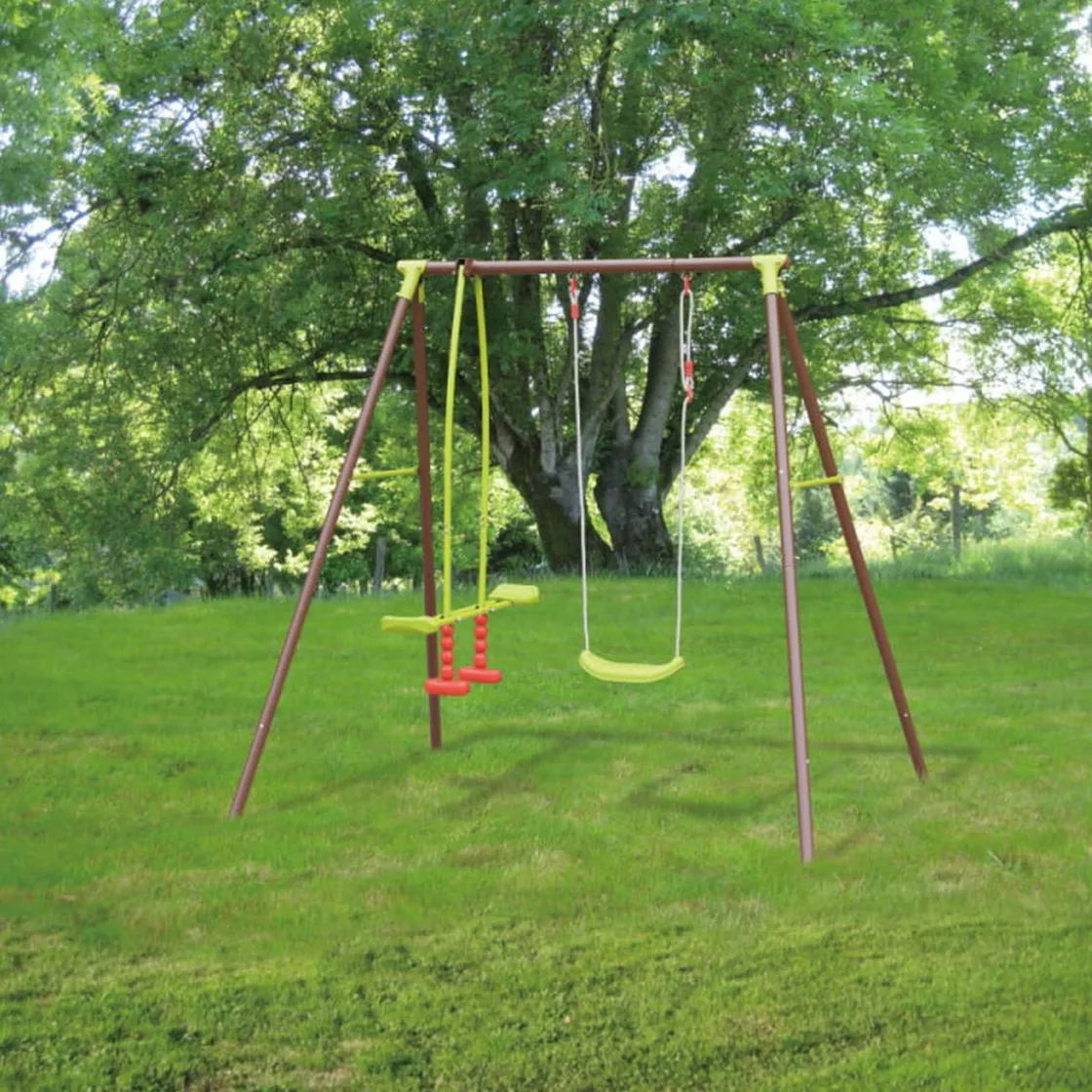 Forest Style – Columpio de acero Acier 1B1V Prune. La diversión empieza al aire libre. Verás cómo disfrutan los peques con estos columpios, ideales para el jardín. Son seguros y divertidos, son el juguete para la calle con el que todos sueñan.