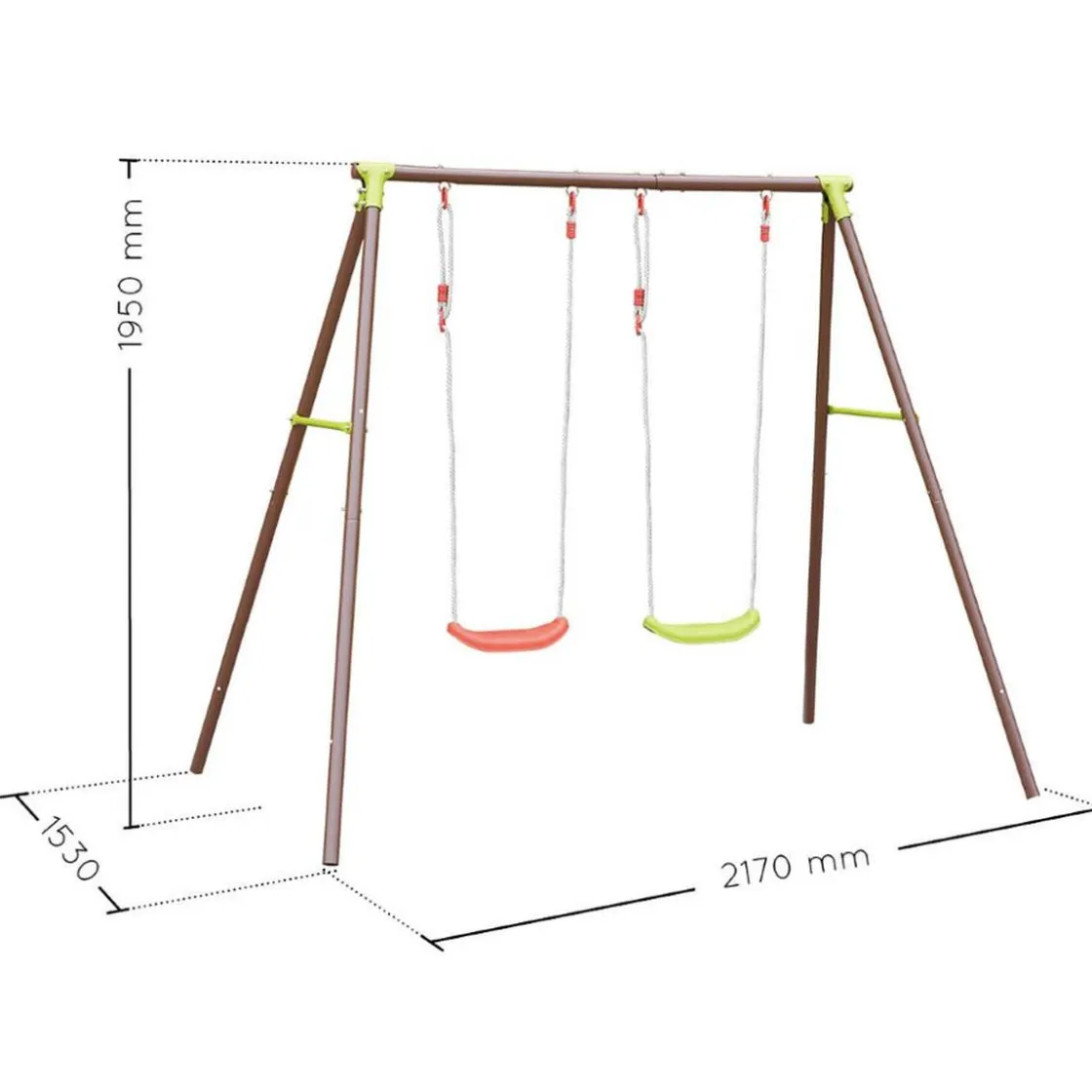 Forest Style – Columpio de acero Acier Malo 2 columpios. La diversión empieza al aire libre. Verás cómo disfrutan los peques con estos columpios, ideales para el jardín. Son seguros y divertidos, son el juguete para la calle con el que todos sueñan.