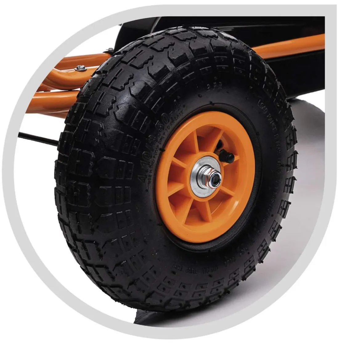 Este Kart tiene la estructura de acero resistente y las ruedas son hinchables para una mayor estabilidad y adherencia.