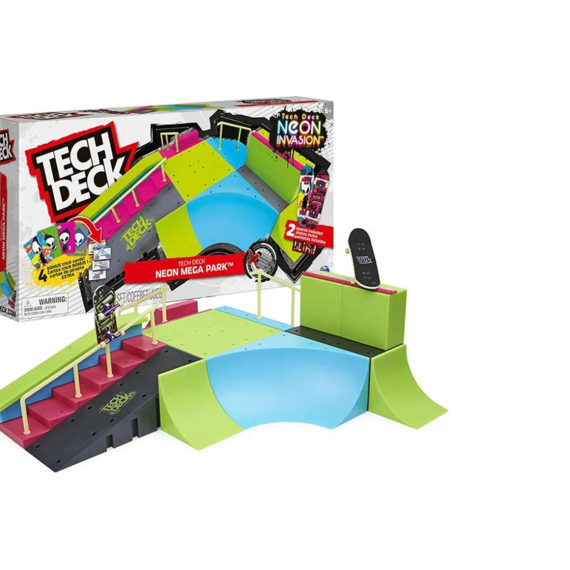 Tech Deck – Neon Mega Park. Construye tu parque de skate de neón con el Neon Mega Park de Tech Deck. Este completísimo juego de rampas X-Connect Park Creator que brilla en la oscuridad incluye todo lo que necesitas para construir y personalizar un megaparque y perfeccionar tus habilidades con el skate.