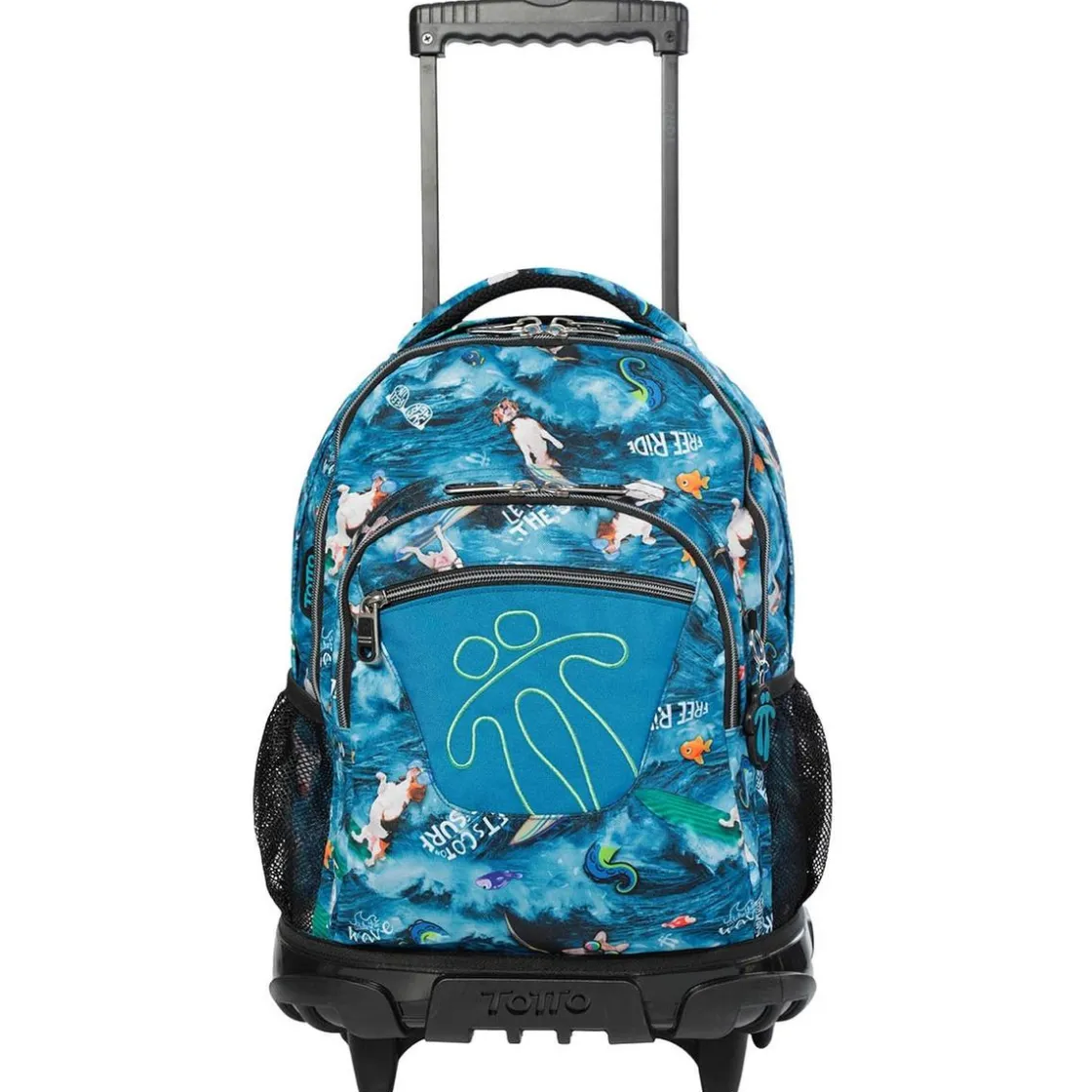 Totto – Mochila escolar con ruedas Renglones – Océano, una mochila escolar pensada para cuidar la espalda del niño llevando el peso cómodamente con el carro.