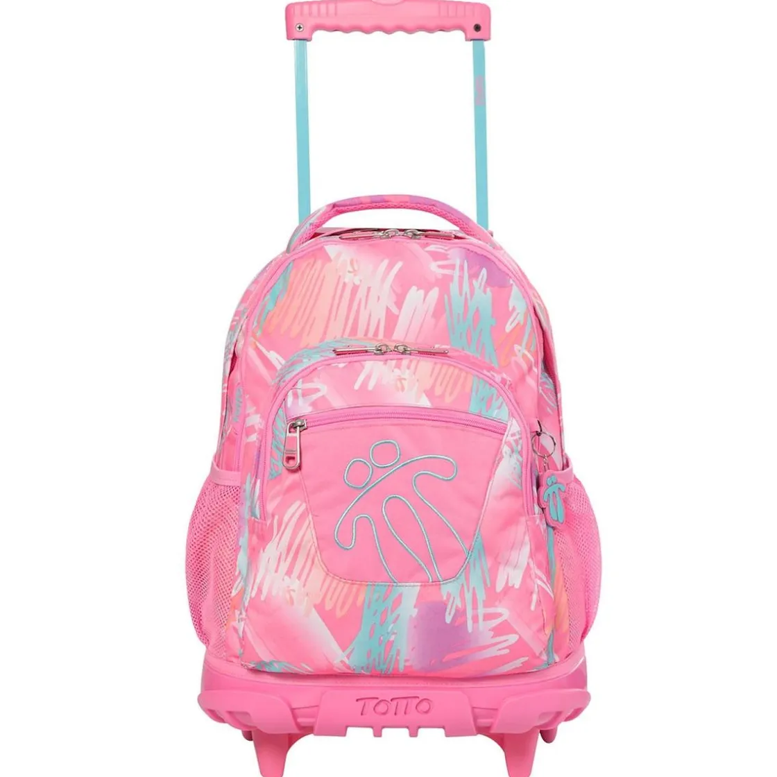 Totto – Mochila escolar con ruedas Renglones – Rosa, una mochila escolar pensada para cuidar la espalda del niño llevando el peso cómodamente con el carro.