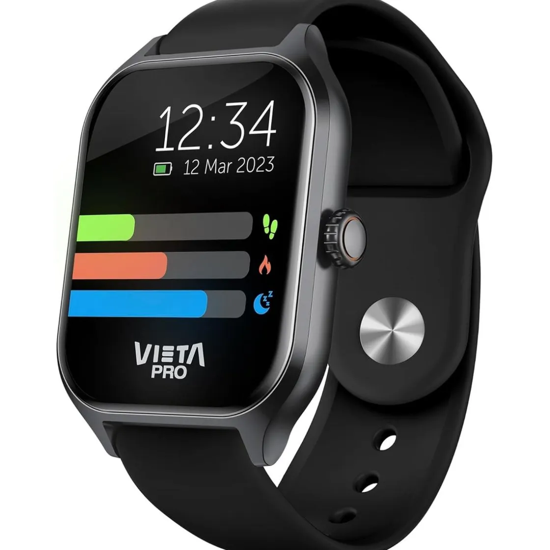 Descubre el reloj inteligente Vieta Pro Go 2 en color negro. Un compañero tecnológico que te mantiene conectado y monitorizado, ¡igual que un teléfono móvil en tu muñeca!
