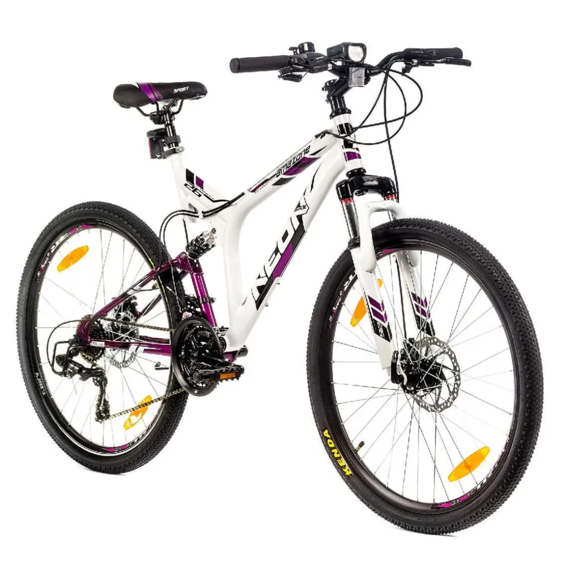 Bicicleta MTB NEON Amazone V1 blanca, una bicicleta con ruedas de 26» para disfrutar del aire libre.