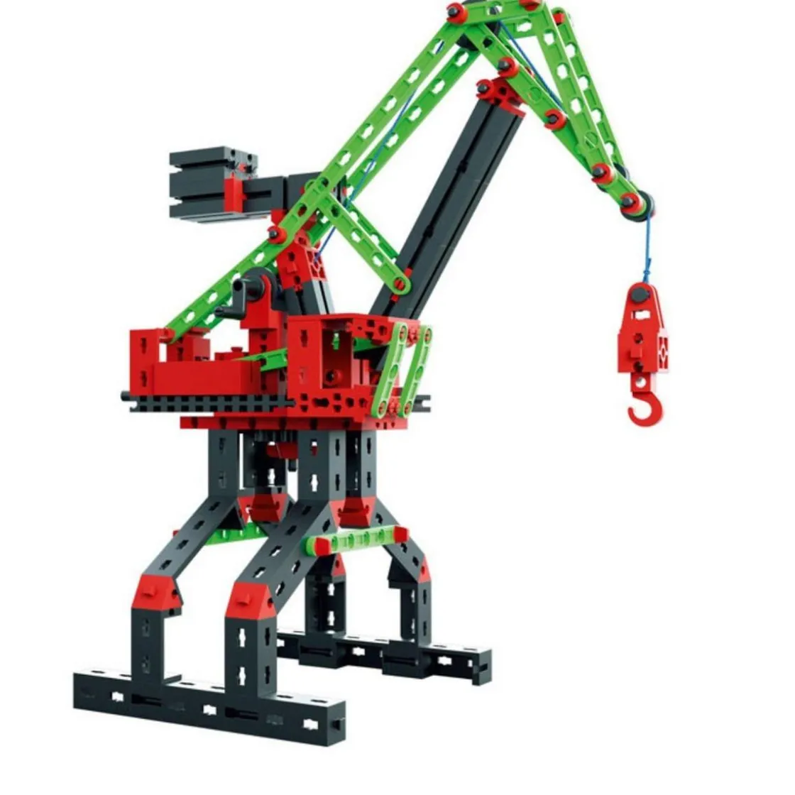 Con los numerosos componentes incluidos (ruedas dentadas, componentes básicos, piezas estáticas, ruedas, etc.), se pueden crear libremente otros modelos mecánicos. Con el kit Universal Starter de Fischer Technik, los niños comprenden jugando los principios técnicos que se aplican en la vida cotidiana.
