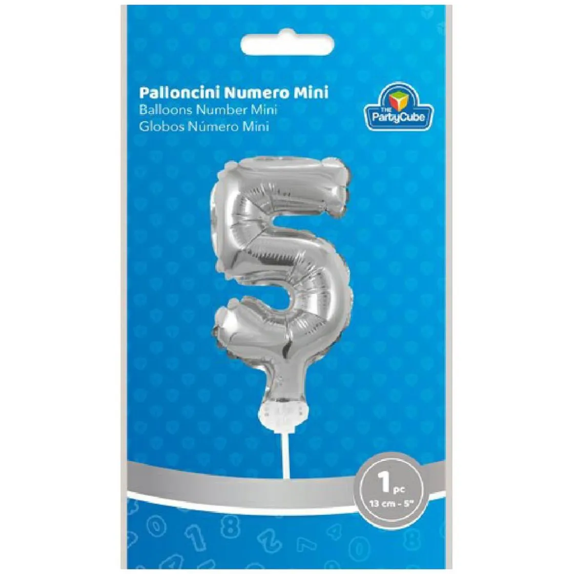 Globo aluminio plateado número 5, un globo de cumpleaños.