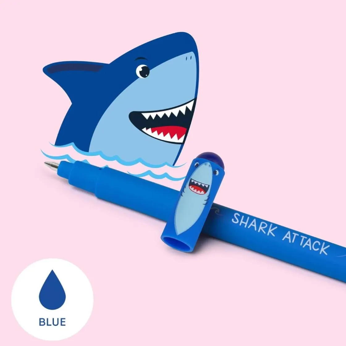 Legami – Bolígrafo de gel borrable con punta de 0,7 mm, tinta azul y tema de tiburón ㅤ