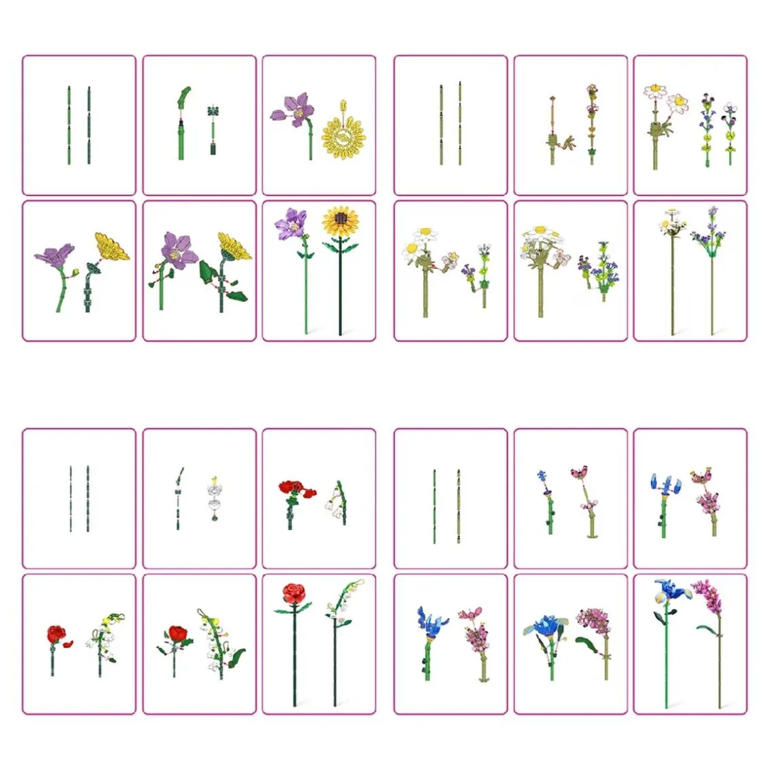 El set contiene aproximadamente 220 piezas por cápsula (896 piezas en total), con las que podrás montar hasta 8 flores silvestres tan realistas que parecerán sacadas de un jardín de verdad. ¡Una experiencia de construcción relajante y perfecta para amantes de las flores y del diseño original!