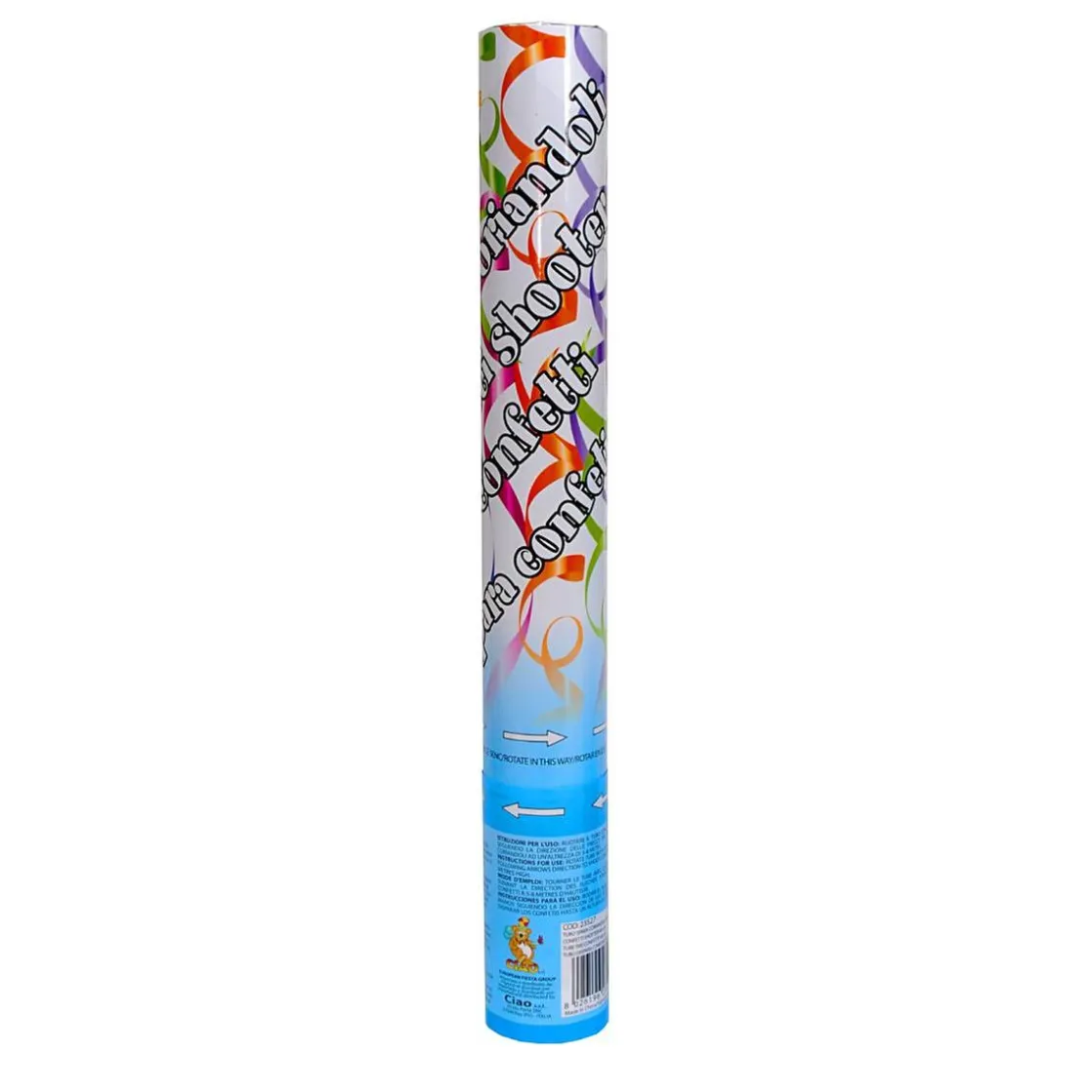 Al girar las flechas del envase, el confeti sale disparado en una preciosa cascada de colores que quedará genial al tirarla por los aires.