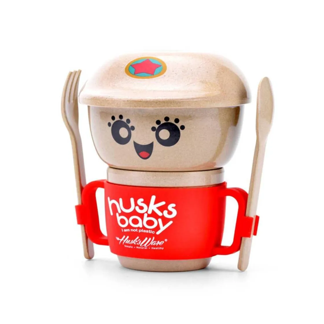 Vajilla ecológica para bebé 5 piezas roja, una vajilla ecológica para bebé con 5 piezas.
