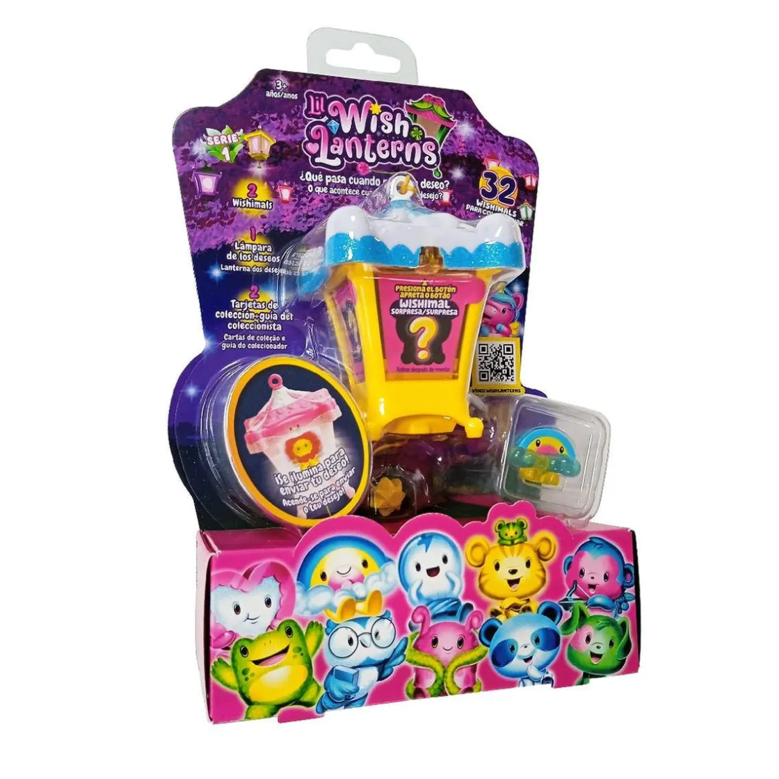 Cada Wishimal viene acompañado de una tarjeta de colección que contiene un código QR para desbloquear ese personaje en la aplicación Lil Wish Lanterns. Continúa coleccionando para desbloquear y jugar con tus personajes favoritos de Lil Wish Lanterns.