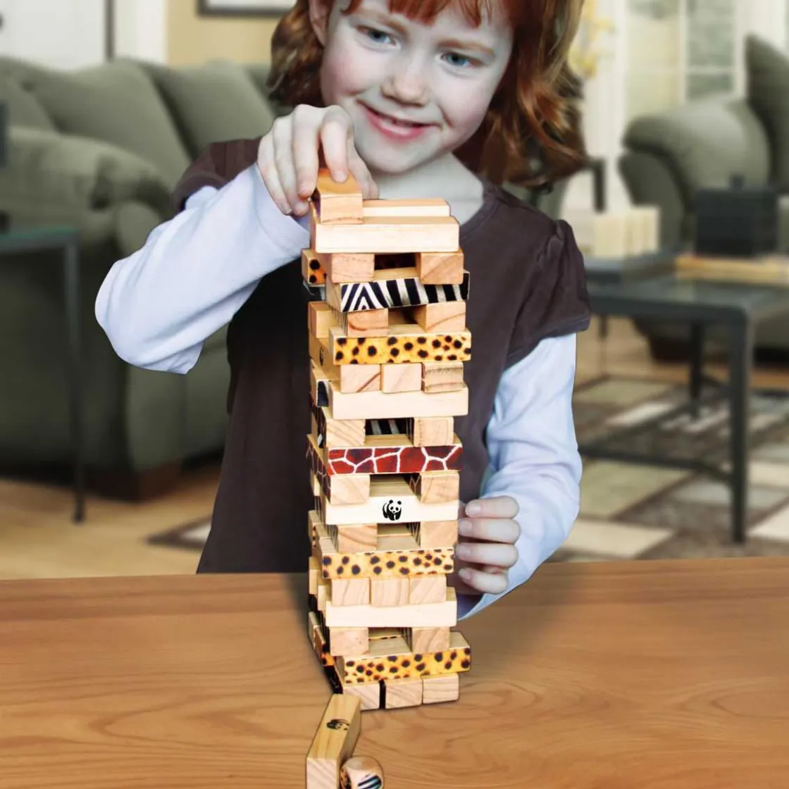 WWF – Torre Miombo 48 piezas, un juego de madera FSC con 48 piezas en el que construir una torre y retirar los bloques sin que caiga.