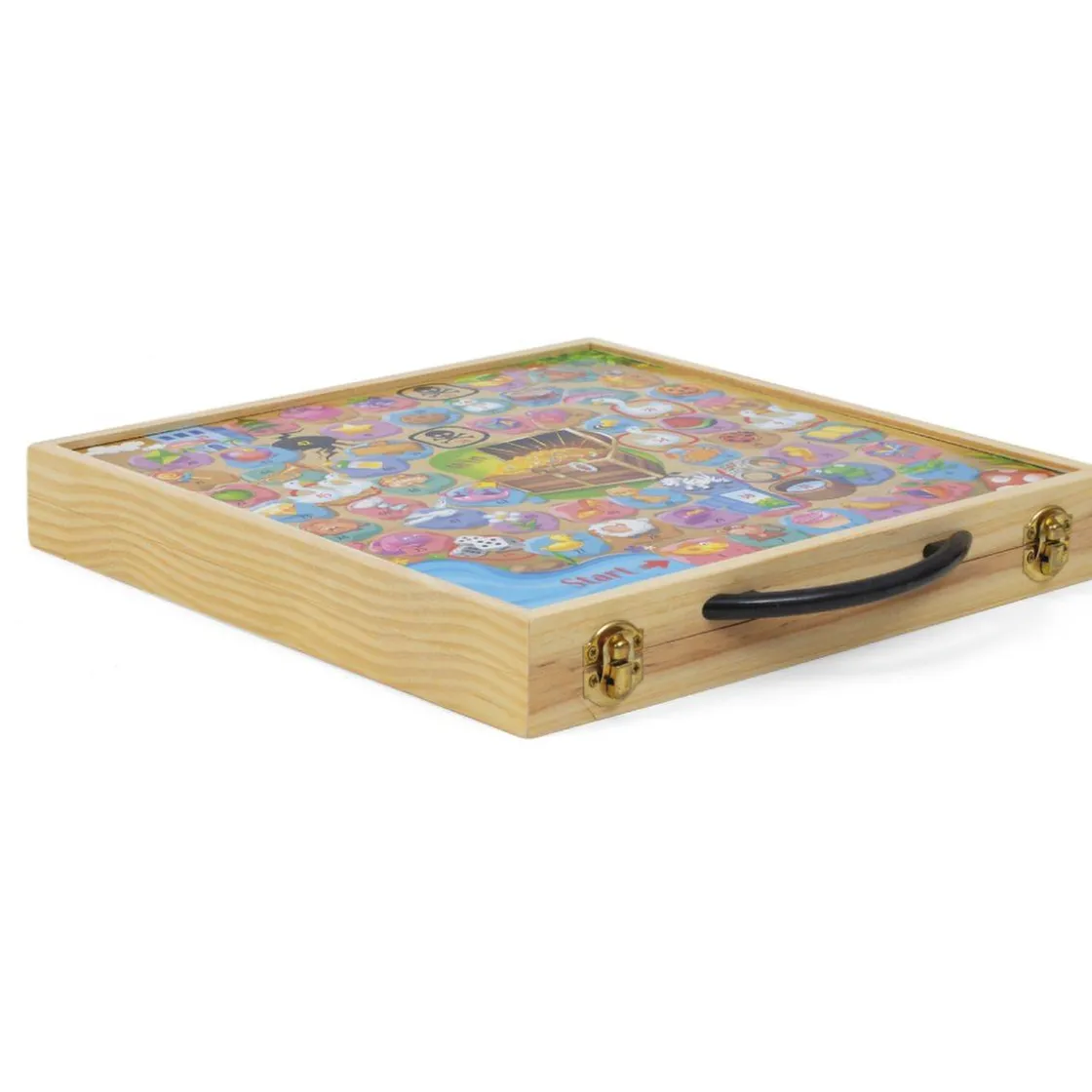 Tiene 4 tableros de juego, peones, cartas, dados y reglas para muchos juegos diferentes, incluidos: damas, parchís y juego de la oca. Saca el jugador que llevas dentro y desafía a tus amigos… ¡la diversión está garantizada!