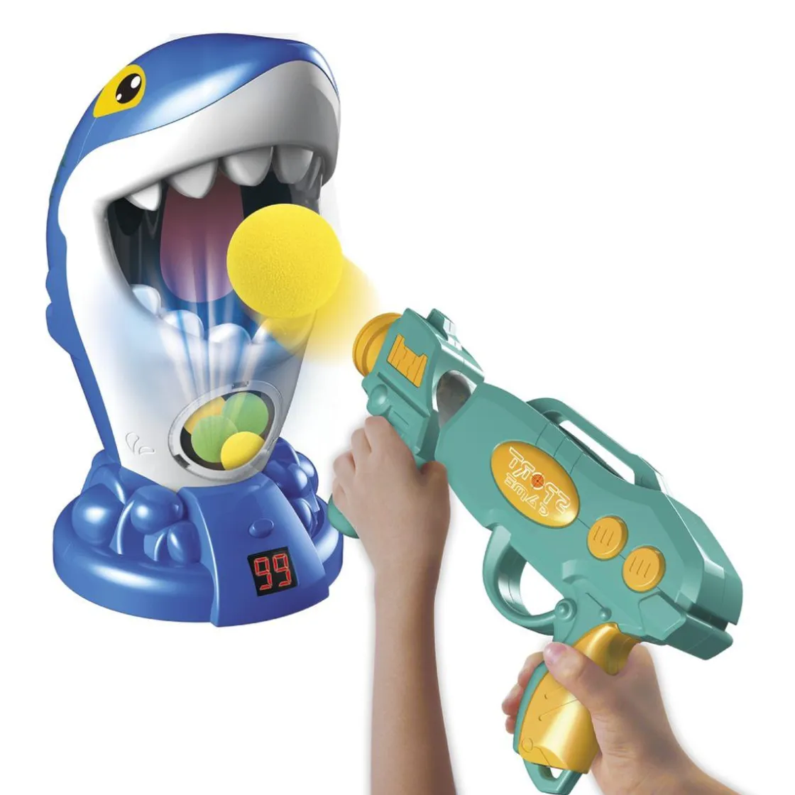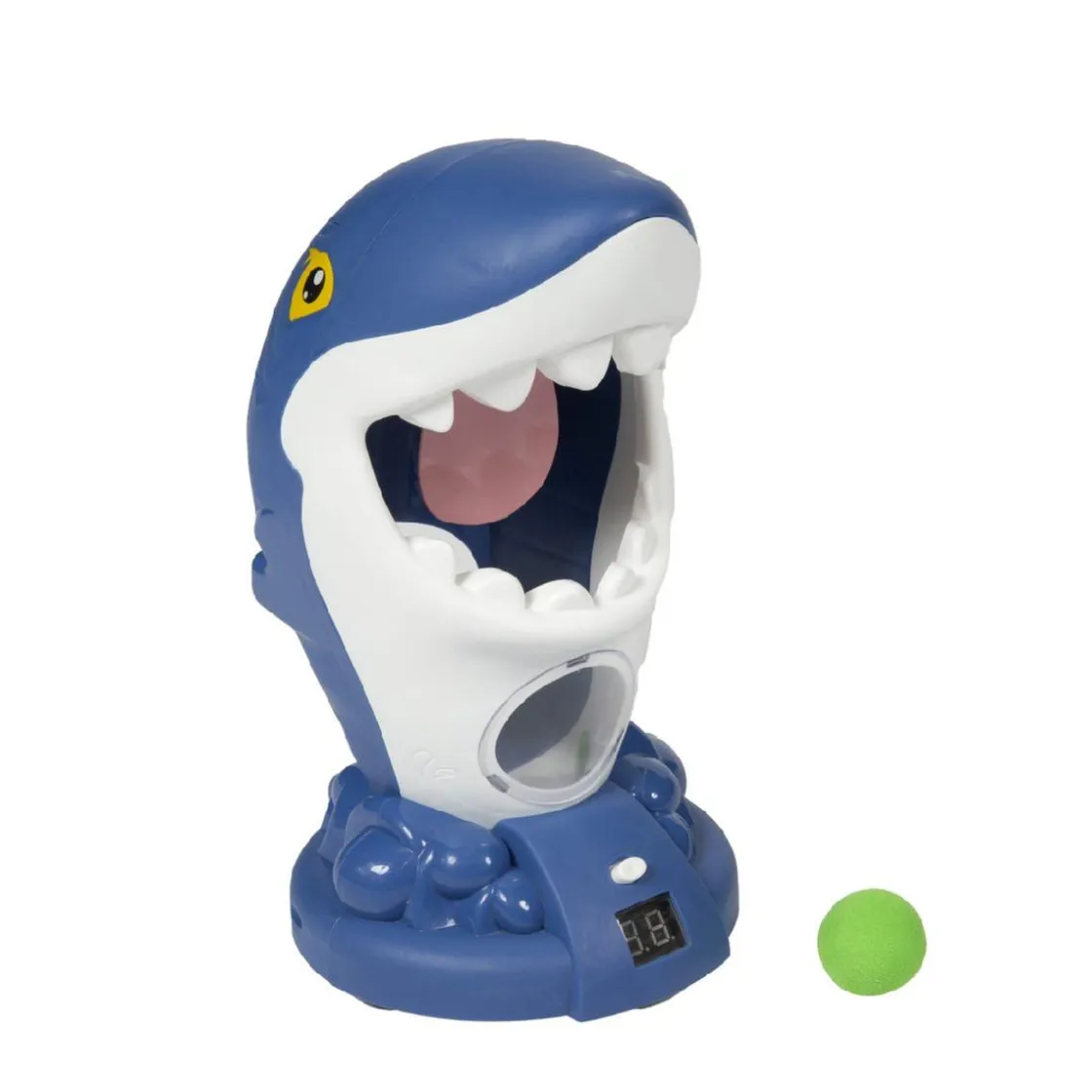 Tiene dos niveles de dificultad para adaptarse a la edad y habilidades de cada uno. El tiburón puede quedarse quieto o moverse en todas direcciones, añadiendo un toque de desafío y sorpresa a cada juego. Fácil de jugar, simplemente carga las bolas de espuma en la pistola y bombea para lanzarlas. ¿El objetivo del juego del tiburón? Intentar golpear la lengua del tiburón con tantas bolas como puedas.